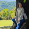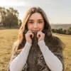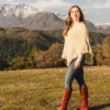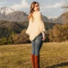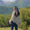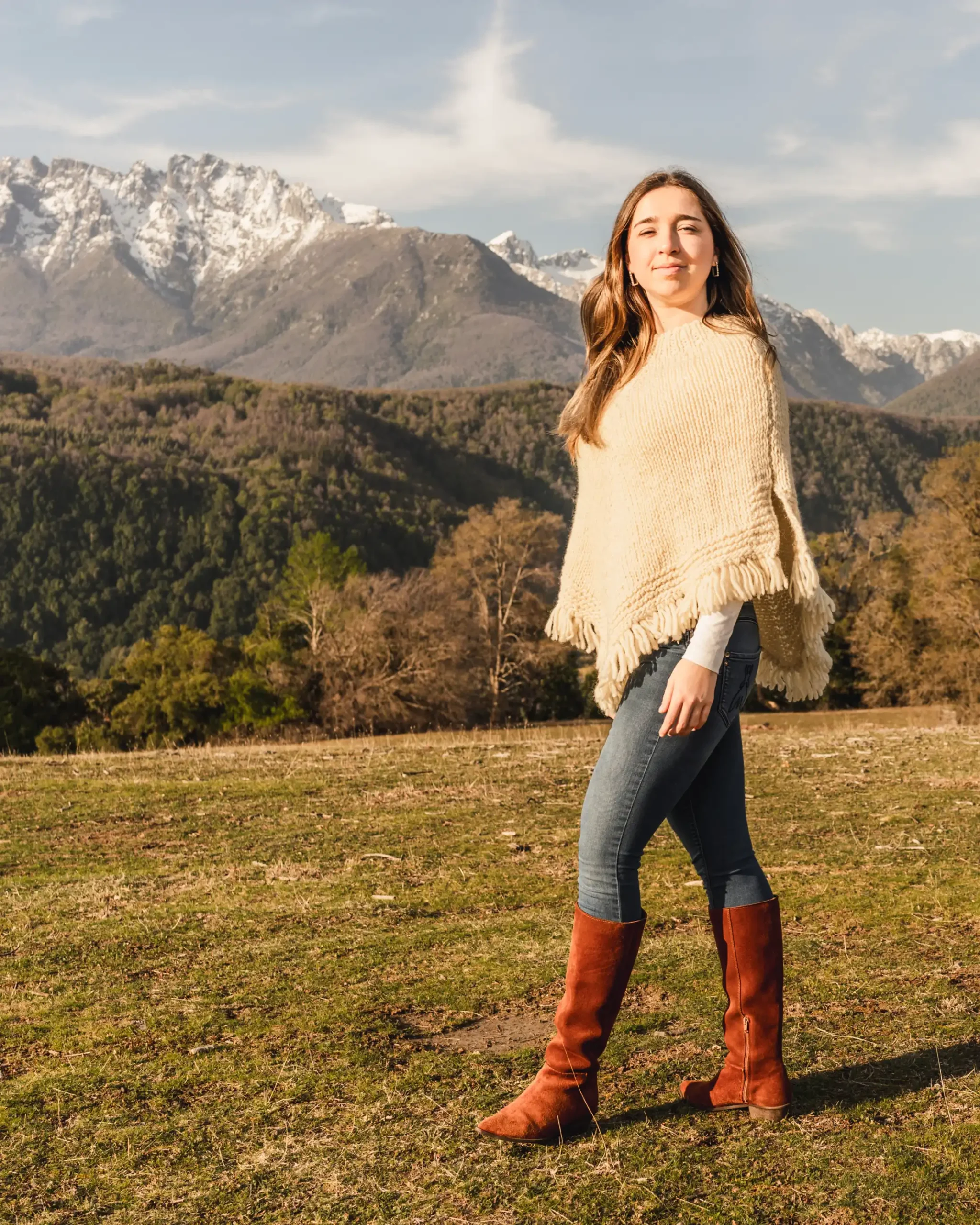 Francisca (5’8″) is wearing the Peumo model in gray, dark brown, and cream.
