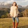 Each Peumo poncho for women is an original, unique piece of clothing. Handcrafted and made from natural fibers, each poncho has its own individual character, making it a unique accessory with a distinctive yet subtle personality. This warm poncho offers comfort and coziness without compromising on style.