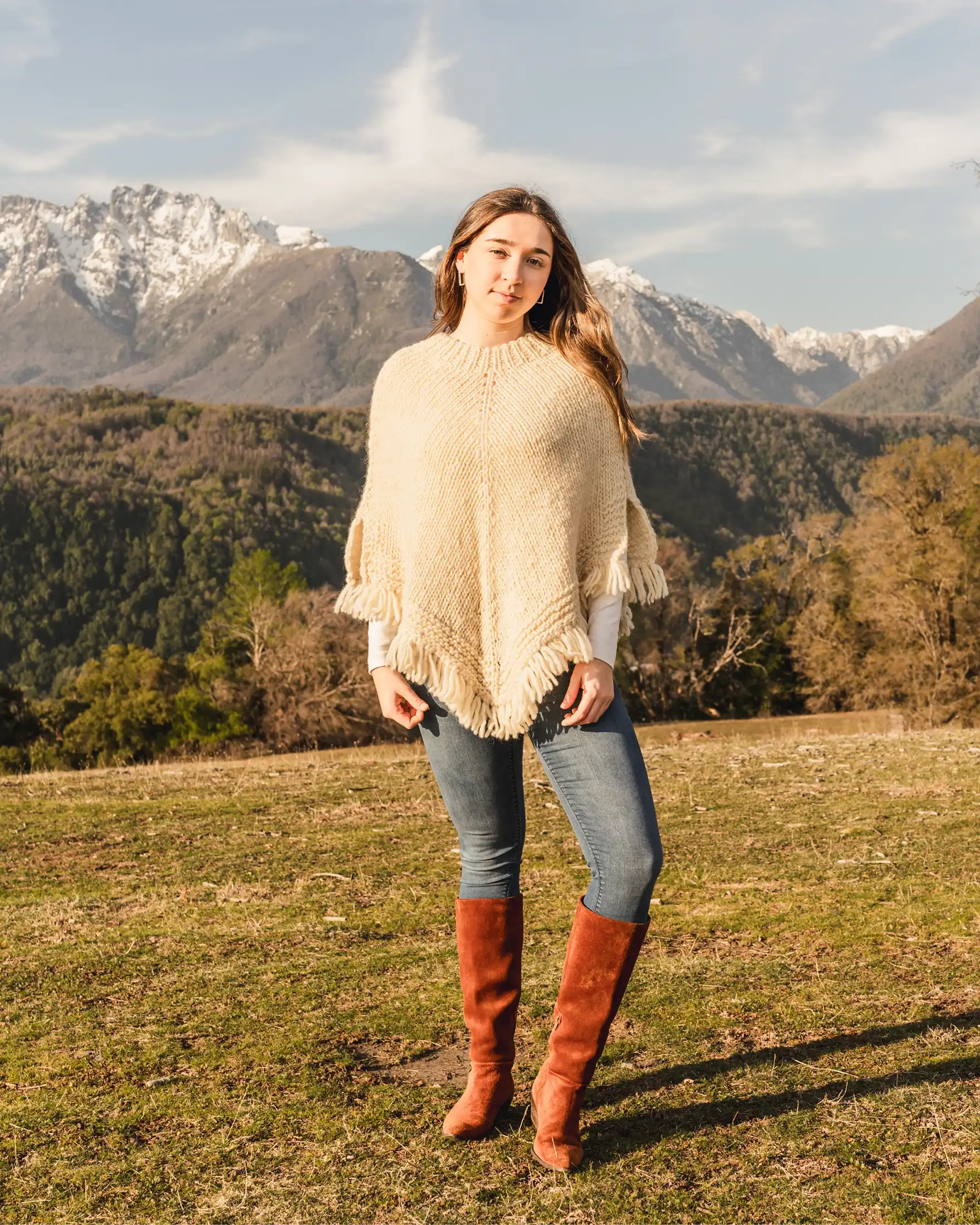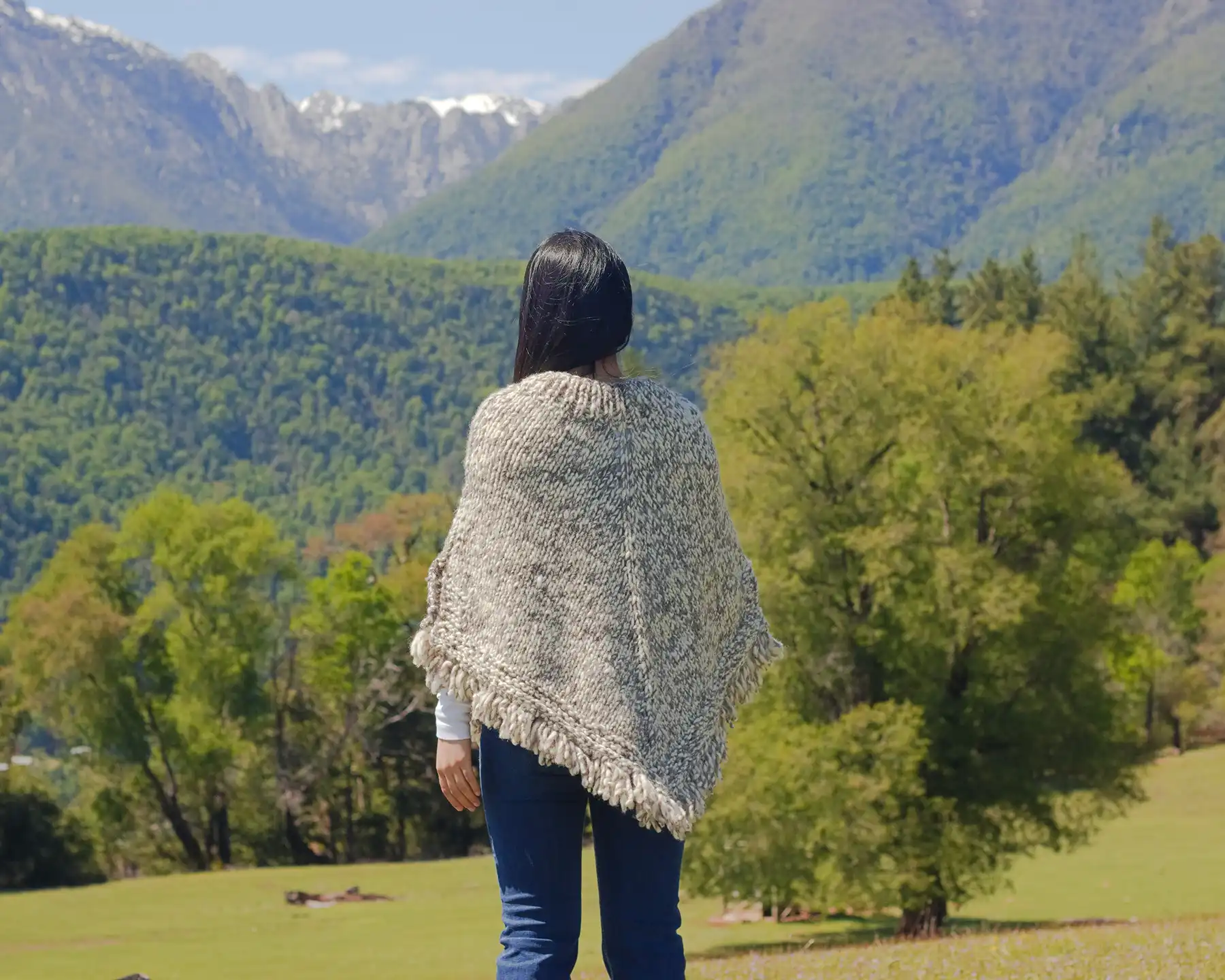 Our ponchos are handmade from natural fibers, which gives each one its own unique character. Slight differences in size (±1 cm) and color tones reflect the authentic variability of wool from sheep living in different environmental conditions. Animals from the southern Andes produce lighter, cooler shades, while those from northern regions produce deeper colors. No two pieces are identical—it is this natural diversity that makes the Peumo poncho a unique accessory that brings a touch of authentic Andean art to your wardrobe.